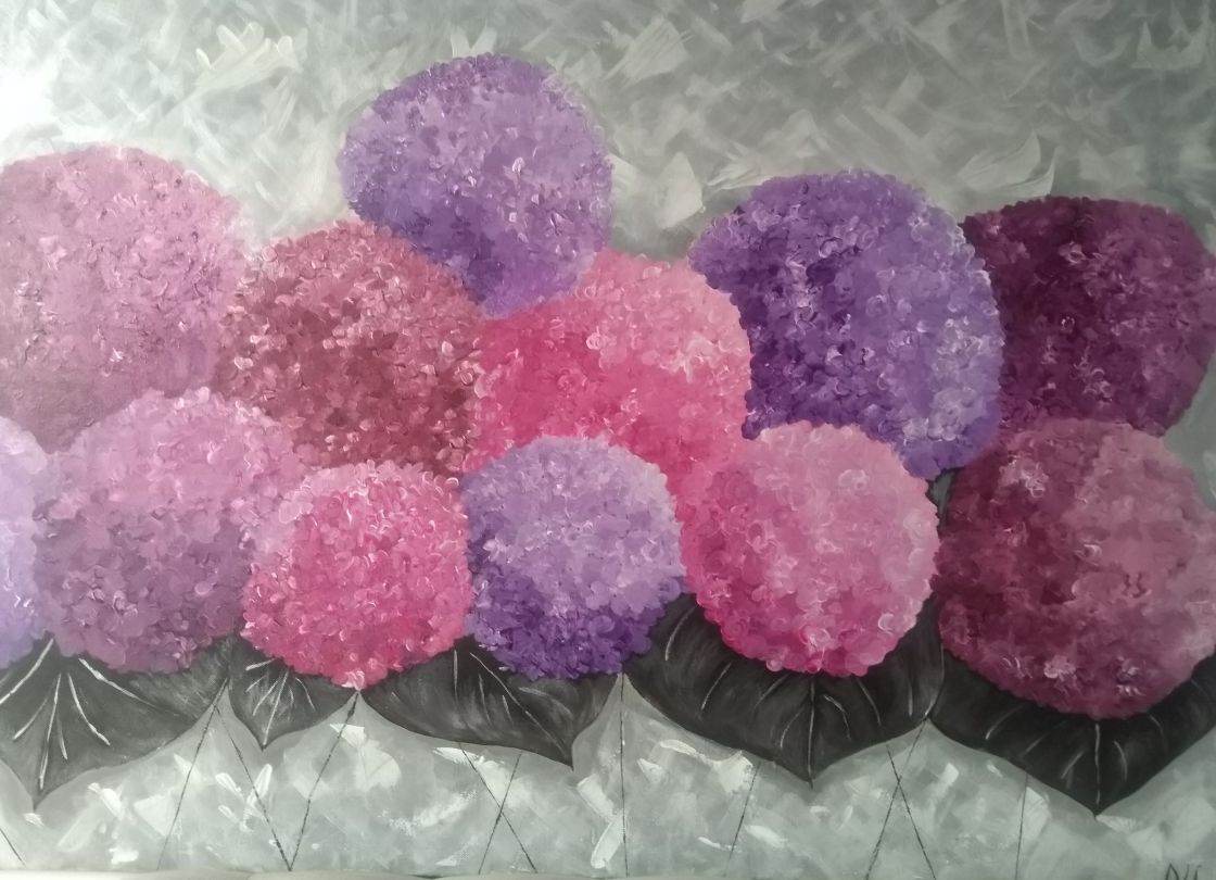 In aceasta lucrare am pus pe panza culorile mele preferate in nuante diferite, atat de frumoase incat este de inteles de ce si-au gasit locul si in poezii.