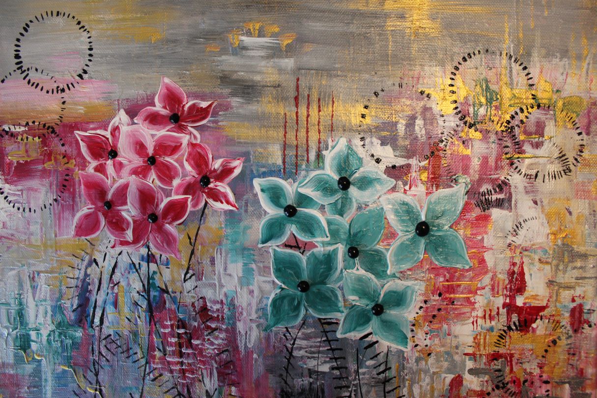 In aceasta lucrare am pus pe panza culorile mele preferate in nuante diferite, atat de frumoase incat este de inteles de ce si-au gasit locul si in poezii.
